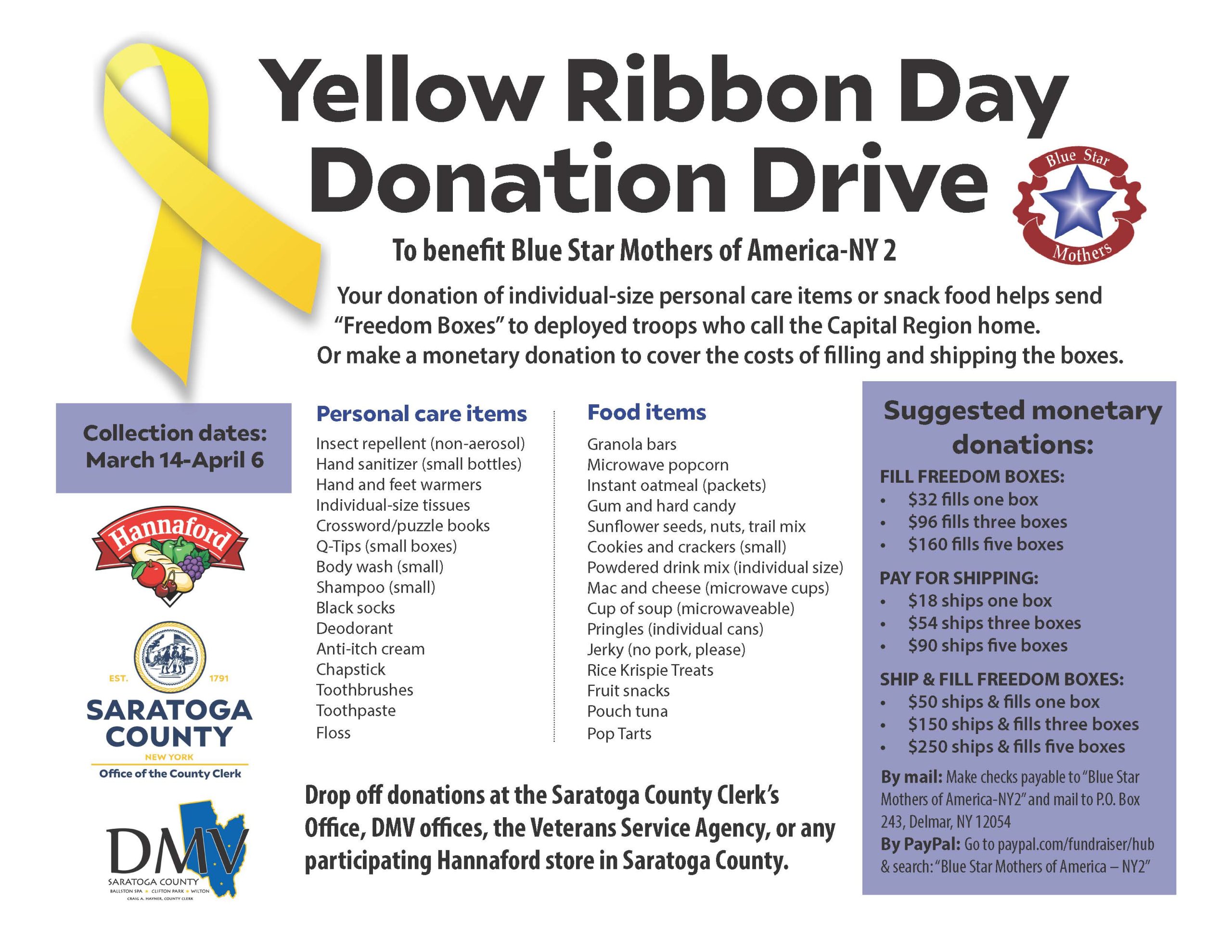 Saratoga County Yellow Ribbon Day Donation Drive